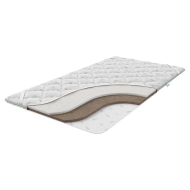 Кокосовая койра - натуральный износостойкий материал. Его так же называют "Латексированный кокос" благодаря обработке латексом. Кокос отличается высокой жесткостью и упругостью и равномерно распределяет нагрузку, что гарантирует поддержку тела в анатомически правильном положении. Благодаря волокнистой структуре, плиты из кокосовой койры отлично пропускают воздух, поэтому внутри них не скапливается пыль и не живут паразиты. Топперы-наматрасники из кокосовой койры обладают превосходными ортопедическими свойствами и отлично подойдут детям до 12 лет, а также людям, страдающим от проблем с позвоночником.